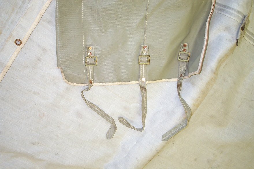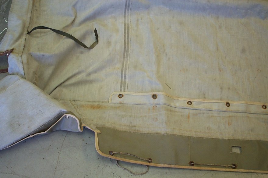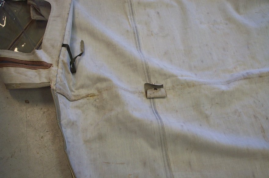 back flap one part ties to last bow, flap may tie to the cross piece over doors |